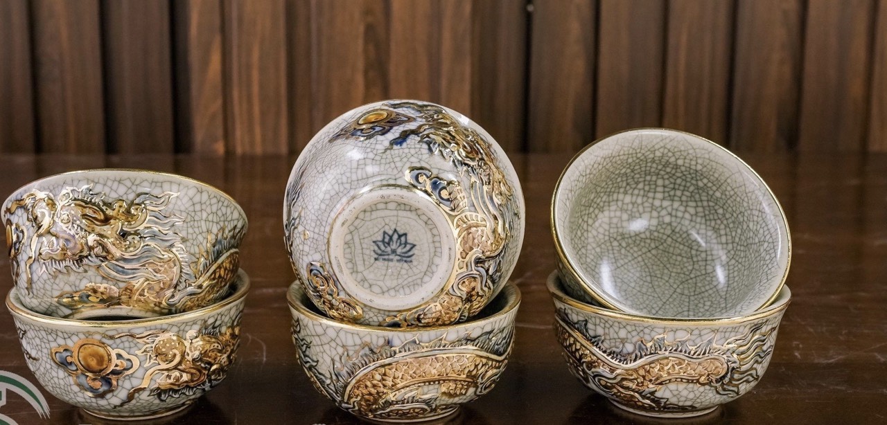 Bat trà sâm dạn nổi rồng vẽ vàng