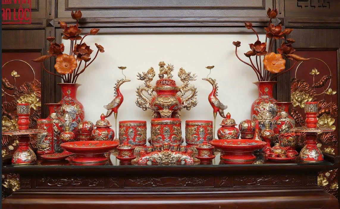 Ý NGHĨA BỘ THỜ MEN RẠN ĐỎ VẼ VÀNG CAO CẤP
