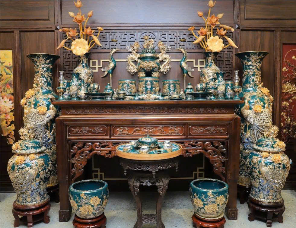 Bộ thờ men xanh ngọc vẽ vàng giúp tụ khí sinh tài, tịnh tâm an gia.